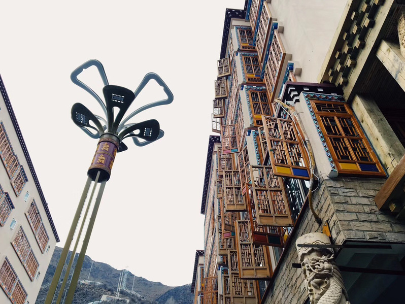 (富有⺠族特⾊的基础设施建设,摄于2018年3⽉,四川省⽢孜藏族族⾃治州德格县)