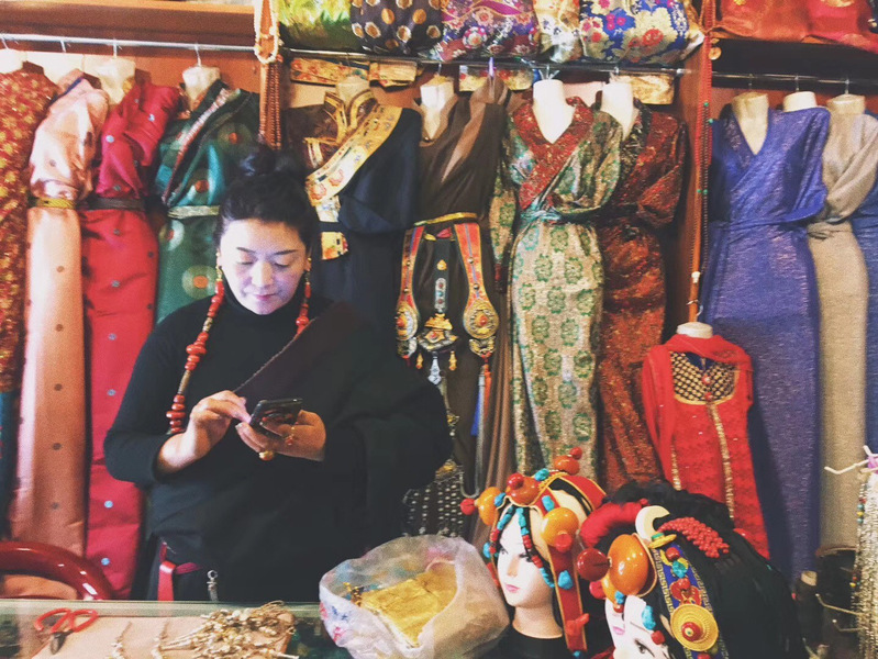 (藏族妇⼥经营的传统服装店,摄于2017年5⽉,四川省⽢孜藏族⾃治州康定县)