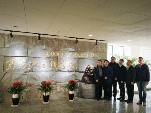 2018年12月13日,学院党总支书记徐川、院长王智、副院长陈红桂、党政办主任曹运星等赴南京师范大学进行调研学习。学院班子专门来到南师大人文社科研究院拜访“长江学者”王永贵教授,请教学院与学科发展难题的破解之道;随后和南师大世俱杯官方网站教授、全国高校思政课教指委委员王跃,院党委书记李前进,院长王刚等进行座谈交流。王刚用精心准备的课件,详细介绍南师大马院在历史沿革、机构设置、师资力量、学科平台、思政课教学、科学研究、人才培养等方面的做法,尤其是学科发展、“五位一体”教学平台建设以及本硕博一体化培养模式方面的经验。李前进介绍了在编制、师资、青年教师培养和成果培育方面的政策做法。双方还就两校世俱杯官方网站发展与合作做了深入交流。