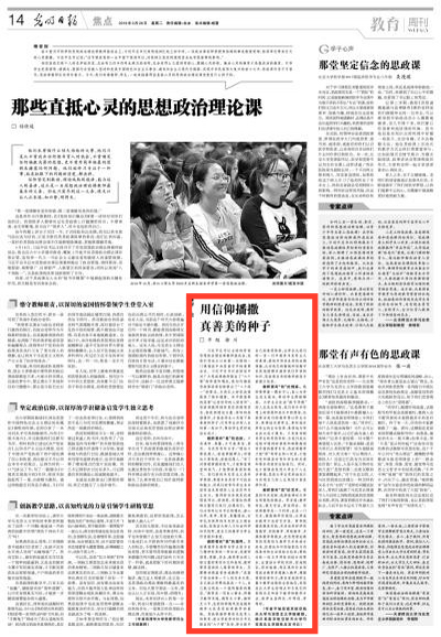 《光明日报》326日刊登世俱杯官网教授平旭、学院党总支书记徐川的文章《用信仰播撒真善美的种子》。