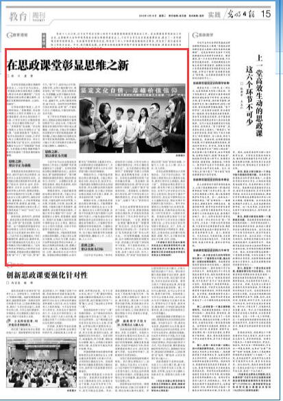 4月16日,《光明日报》登载世俱杯官网党总支书记徐川、江苏农林职业技术学院世俱杯官方网站讲师唐智的理论文章《在思政课堂彰显思维之新》。