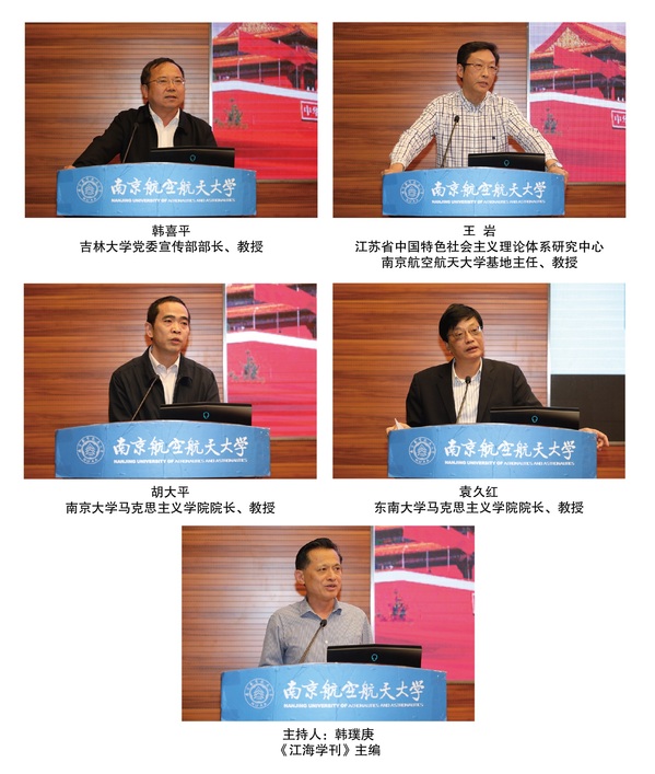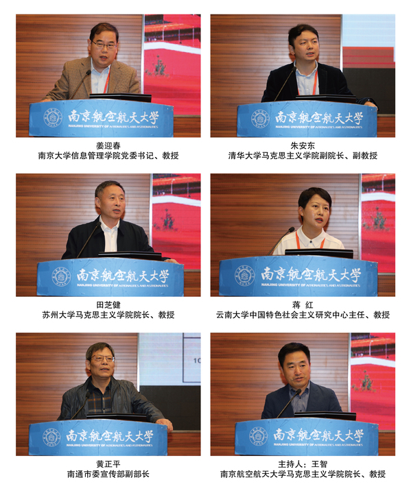 在专家主旨发言阶段,天津大学世俱杯官方网站院长(原国防大学马列所所长)颜晓峰、中国社会科学院马克思主义研究院副院长辛向阳、中共中央党校(国家行政学院)世俱杯官方网站薛广洲、中国浦东干部学院副院长刘靖北、安徽省社会科学院院长曾凡银、中国人民大学世俱杯官方网站党委书记王易、吉林大学党委宣传部部长韩喜平、湘潭大学世俱杯官方网站教授李佑新、首都师范大学世俱杯官方网站院长王淑芹、南京大学世俱杯官方网站院长胡大平、江苏省中国特色社会主义理论体系研究中心世俱杯官方网站基地主任王岩、东南大学世俱杯官方网站院长袁久红、北京科技大学世俱杯官方网站院长彭庆红、南京师范大学世俱杯官方网站院长王刚、复旦大学世俱杯官方网站院长李冉、西安交通大学世俱杯官方网站刘儒、山东大学世俱杯官方网站徐国亮、南京大学信息管理学院党委书记姜迎春、清华大学世俱杯官方网站副院长朱安东、苏州大学世俱杯官方网站院长田芝健、贵州大学世俱杯官方网站院长张国安、云南大学中国特色社会主义研究中心主任蒋红、南通市委宣传部副部长黄正平等23位专家围绕马克思主义为什么“行”、中国共产党为什么“能”、中国特色社会主义为什么“好”、“中国特色社会主义的本质特征”、“中国共产党是一个守正创新的马克思主义政党”、“人民奋斗是实现中华民族伟大复兴根本力量”、“民粹主义辨析”、“构建人类命运共同体的方法论意蕴”、“推进国家治理体系和治理能力现代化的路径选择”、“新中国70年,中国特色社会主义的理论原典”、“中华优秀传统文化与中国特色社会主义文化之间的关系”、“中国式现代化的根本特征”、“四个自信根本上是中国特色社会主义自信”等主题进行了主旨发言。