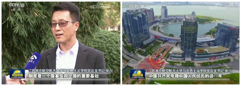 在《新闻联播》“坚定制度自信 迈向伟大复兴——十九届四中全会在各地引起热烈反响”的报道中,徐川同志作为该条报道中首位出镜专家,解读了我国社会主义制度的优越性。徐川在采访时说,“制度是一个国家安邦定国的重要基础,中国共产党带领中国人民经历的这70年创造的彪炳史册的人间奇迹,已经充分地彰显了我们制度的巨大优势。”