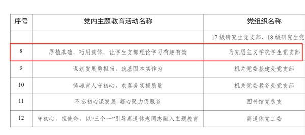 1月8日,校党委公布了2018-2019 年度党内主题教育活动评选结果,世俱杯官网学生党支部报送的“厚植基础,巧用载体,让学生支部理论学习有趣有效”党内主题教育活动被评为“优秀党内主题教育活动”(全校仅12项)。