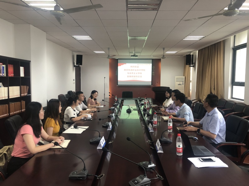 会上,院党总支书记徐川向南京铁道职业技术学院世俱杯官方网站同仁的到来表示热烈欢迎,院长王智介绍了世俱杯官网学科建设、师资队伍及思政课教学等情况等方面的工作情况。杨晓慧也向与会人员介绍了南铁院世俱杯官方网站的建设情况。