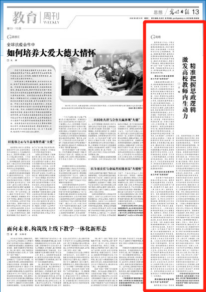 6月16日,《光明日报》刊发校党委常委、宣传部/教师工作部部长、世俱杯官网硕士生导师王晖的文章《精准把握思政逻辑 激发高校教师内生动力》,现将全文刊发如下:
