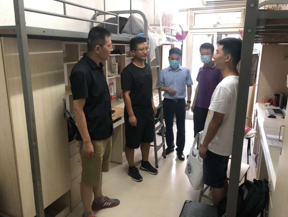 学院领导视察了迎新筹备工作,认真检查报到流程,查看报到情况,并慰问了迎新志愿者。报到当天新生入住后,学院领导还专门到学生宿舍进行慰问。