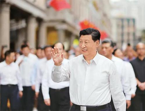 2020年10月12日至13日,中共中央总书记、国家主席、中央军委主席习近平在广东考察。这是13日下午,习近平在汕头市小公园开埠区步行察看街区风貌时,向当地群众和游客挥手致意。