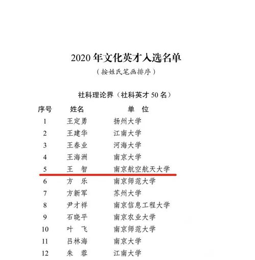近日,江苏省委宣传部公布了“紫金文化人才培养工程”文化英才和文化优青入选名单,世俱杯官网王智教授入选2020年文化英才(全省社科理论界共50名)。