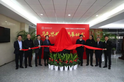 郑永安、杭育新、陶勇、李遥、张捷、尹悟铭、徐川、王智共同为马克思雕像揭幕。