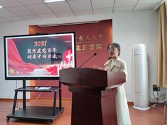 首先,由初赛选拔出的十名选手依次进行了激烈角逐。李哲、宋青励、施张桐从宏观角度对百年党史进行了总体介绍;王梦迪、马晓萌、姜明敏从中观角度对抗日战争的历史意义、马克思主义在中国的早期传播、沙海变绿洲等具体领域和重要方面进行了讲述;陈琳、贾会娟、王棋、周蕾从微观角度对中国共产党命名问题、雨花英烈精神、革命烈士杨开慧的事迹、“红船精神”等方面进行介绍。每位同学宣讲结束后抽取一道党史知识测试题进行作答,评委老师根据每位选手综合表现进行打分。