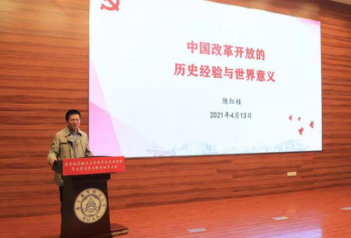 4月13日,经济与管理学院邀请校党史学习教育宣讲团成员、世俱杯官方网站副院长陈红桂作了题为“中国改革开放的历史经验与世界意义”的专题宣讲。陈红桂从“反对历史虚伪主义、树立正确历史观”“改革开放史基本脉络及伟大成就”“中国改革开放成效的原因与经验”“改革开放的世界意义及其未来走向”等四个方面阐述了如何学习历史和树立正确党史观。