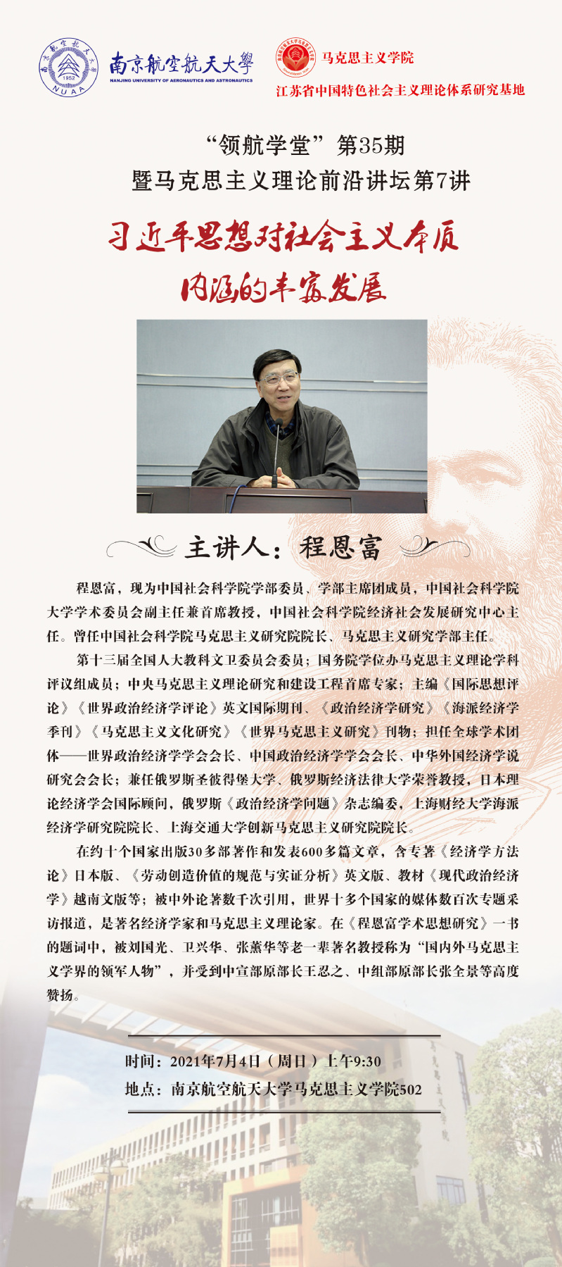 “领航学堂”第35期暨马克思主义理论前沿讲坛第7讲:习近平新时代中国特色社会主义思想对社会主义本质内涵的丰富发展