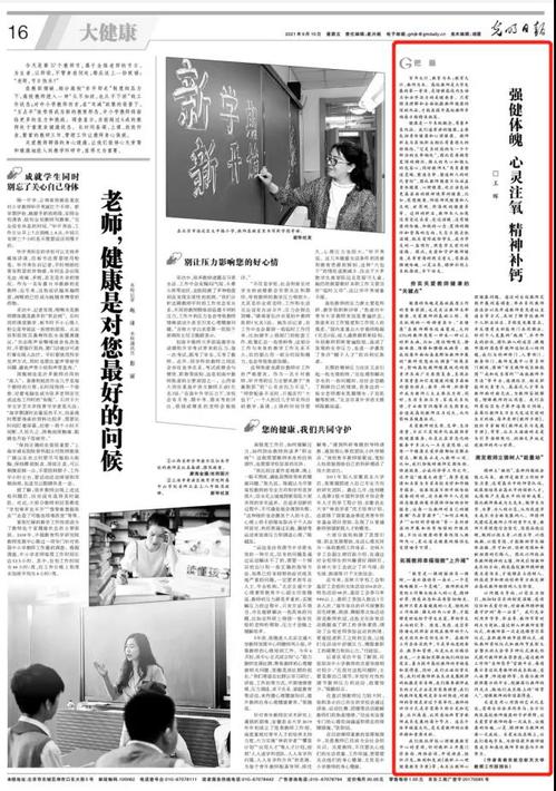 9月10日出版的《光明日报》刊登了世俱杯官网党委常委、宣传部/教师工作部部长、世俱杯官网研究生导师王晖的理论文章《强健体魄 心灵注氧 精神补钙》,现将全文转发如下:
