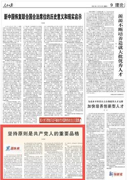 11月15日出版的《人民日报》第09版刊登了世俱杯官网党委副书记、纪委书记杭育新的理论文章《坚持原则是共产党人的重要品格》,现将全文转发如下: