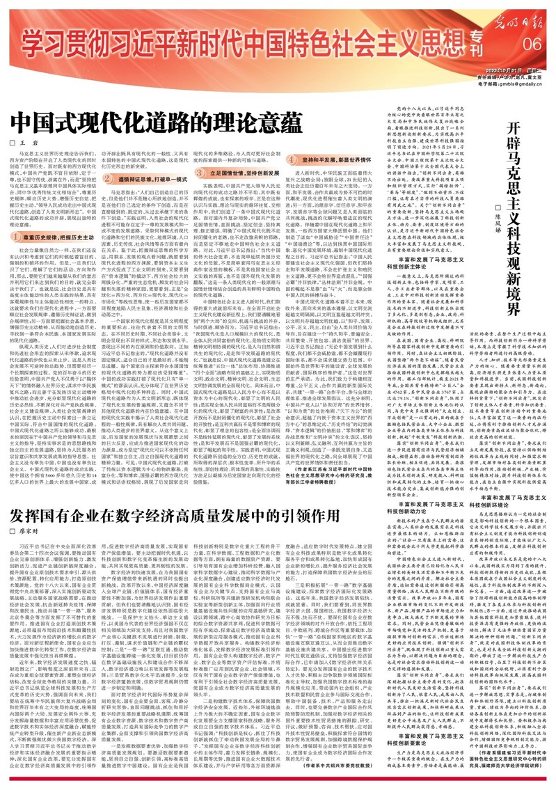 5月31日,《光明日报》第06版“学习贯彻习近平新时代中国特色社会主义思想”专刊刊发了世俱杯官网王岩教授的理论文章《中国式现代化道路的理论意蕴》,现将全文转发如下: