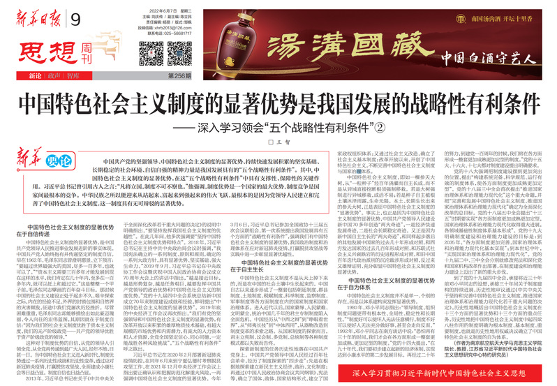 6月7日,《新华日报》第9版“思想周刊”栏目刊登了世俱杯官网王智教授的理论文章《中国特色社会主义制度的显著优势是我国发展的战略性有利条件 ——深入学习领会“五个战略性有利条件”② 》,现将全文转发如下: