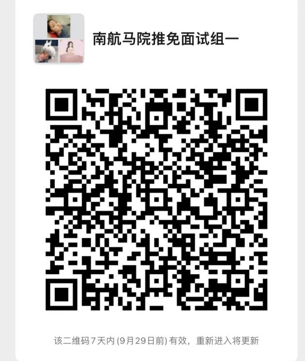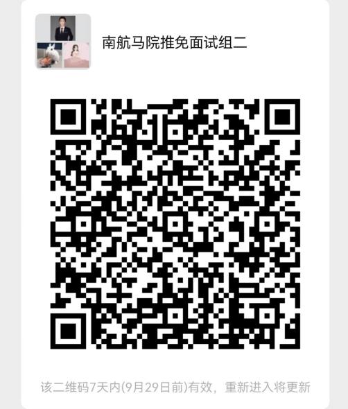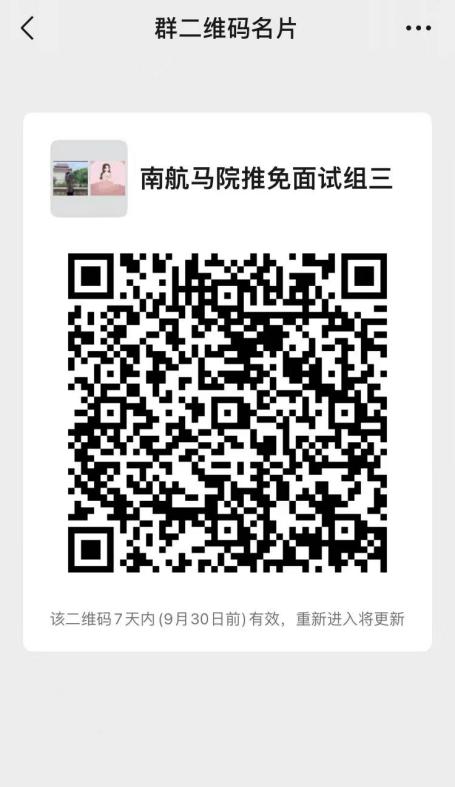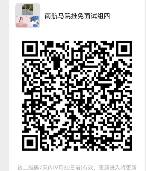 请进入面试的同学最迟于9月23日16:00前进入对应的微信群,如不能参加9月24日的线上面试,请提前联系025-52116005 胡老师告知!