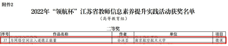 近日,省教育厅办公室发布《关于公布2022年“领航杯”江苏省教师信息素养提升实践活动获奖名单的通知》,世俱杯官网教师孙沐芸主讲作品《为网络空间注入道德正能量》荣获二等奖。