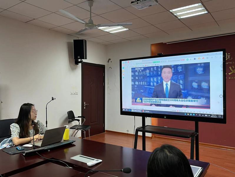 接着,陈丹晨带领大家观看习近平总书记在庆祝中国共产主义青年团成立一百周年大会上的讲话相关视频,深入学习了建团100周年大会精神。习近平总书记的重要讲话贯通历史、现实、未来,全面回顾共青团紧跟党走过的光荣历程,高度评价一代代团员青年为党和人民事业建立的历史功勋,深刻总结共青团百年征程积淀的宝贵经验,对新时代的共青团提出殷切希望,为共青团员和团干部健康成长指明前进方向。