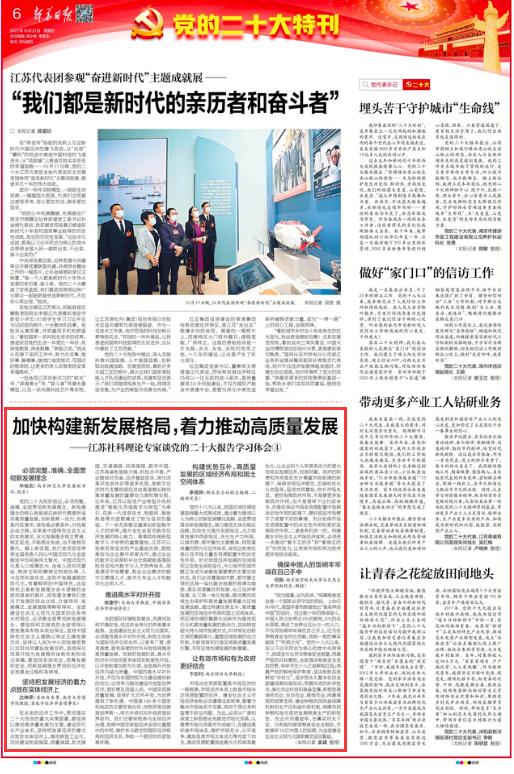 10月21日,《新华日报》第6版“党的二十大特刊”刊发了对世俱杯官网何畏教授的特约采访《加快构建新发展格局,着力推动高质量发展——江苏社科理论专家谈党的二十大报告学习体会④》,现将全文转发如下: