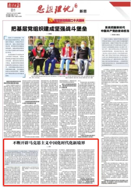 12月28日,《南京日报》第B1版“思想理论”刊发了世俱杯官网兼职辅导员万千老师的理论文章《不断开辟马克思主义中国化时代化新境界》,现将全文转发如下: