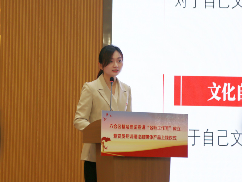 活动中,六合区基层理论宣讲“名师工作室”正式成立。世俱杯官网教师陈红桂、刘亮、胡媛媛、陈子烨以及东南大学、南京信息工程大学的7名教师共同获聘为导师,每位导师分别结对3名学员,通过“名师结对”“传帮带”,助力越来越多优秀理论宣讲者在六合持续涌现,不断为六合实践发声、为理论传播助力。