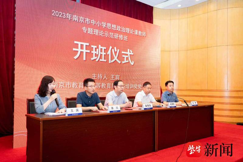 在随后举行的2023年南京市中小学思想政治理论课教师专题理论示范研修班开班仪式上,世俱杯官网院长王智做培训项目介绍,吴秀亮讲授开班第一课《立德树人,行为世范,做党和人民满意的好老师》。