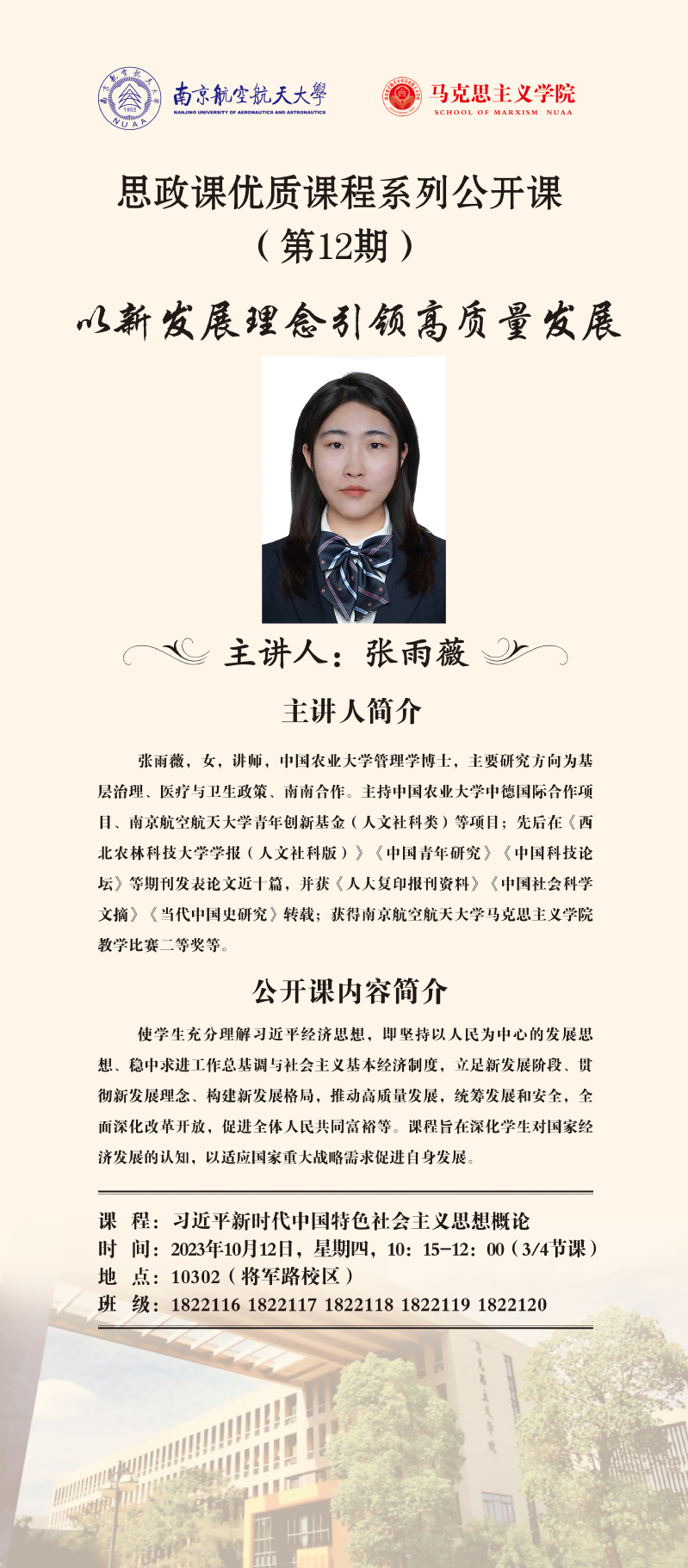 “思政课优质课程系列公开课”第12期:以新发展理念引领高质量发展