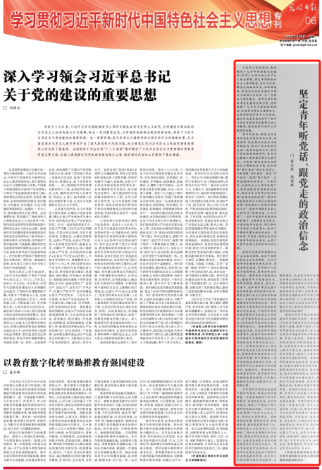 8月28日,《光明日报》第06版“学习贯彻习近平新时代中国特色社会主义思想”专刊刊发了我院崔兴毅博士、胡媛媛副教授的理论文章《坚定青年听党话、跟党走的政治信念》,现将全文转发如下: