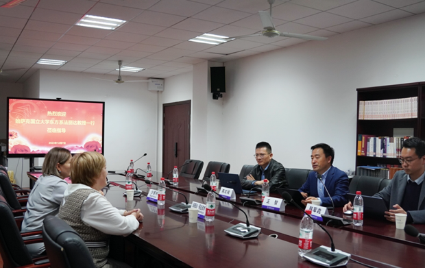 2023年12月7日下午,哈萨克国立大学东方系教研室主任、博士生导师法丽达·吾拉孜肯教授一行来世俱杯官网交流。世俱杯官网院长王智,副院长陈红桂,世俱杯官网青年教师、哈萨克国立大学访问学者韩军垚等参加交流。