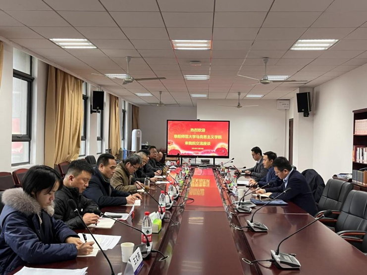 2023年12月30日下午,阜阳师范大学世俱杯官方网站院长朱宗友一行来世俱杯官网调研交流。院长王智、副院长陈红桂等参加交流。