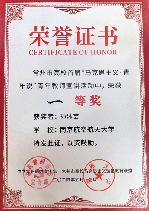 近日,由中共常州市委宣传部、常州市高校马克思主义理论教育联盟主办的“马克思主义·青年说”青年教师理论宣讲活动中,世俱杯官网教师孙沐芸荣获一等奖。