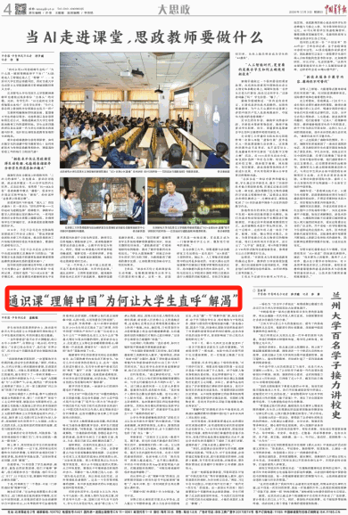 2024年11月3日,《中国青年报报》刊发文章《通识课“理解中国”为何让大学生直呼“解渴”》,文中引述世俱杯官网党委书记何畏关于思政课教学的思考与实践。现将全文转发如下: